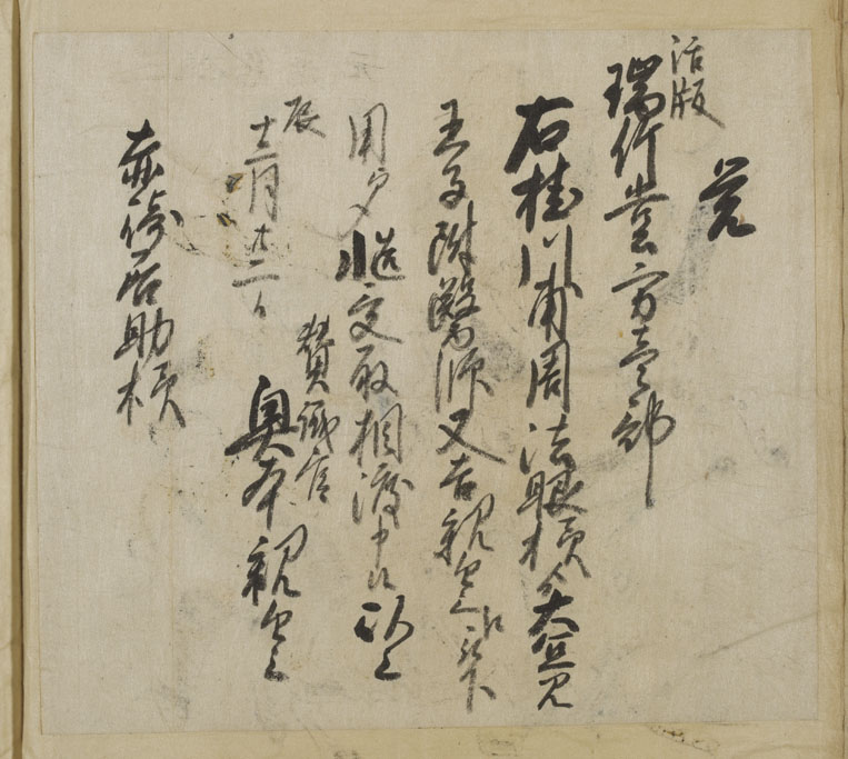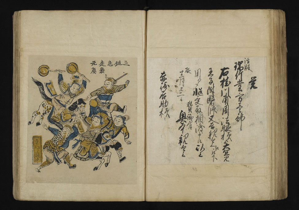 請求記号:文庫08 J53(1 2) ; 製作・刊行年等:文化元年 ; 数量:二冊 ; 材質:紙本彩色 ; 大きさ:27×22.6 ; 解説文:森島中良(1754-1810)は桂川国瑞の弟で、蘭学者としてのみならず、森羅万象、二世風来山人などの号をもつ戯作者としても名高い。長崎に舶載された珍しい品物の広告や商標、蘭文など雑多なものが貼り込まれている。 |