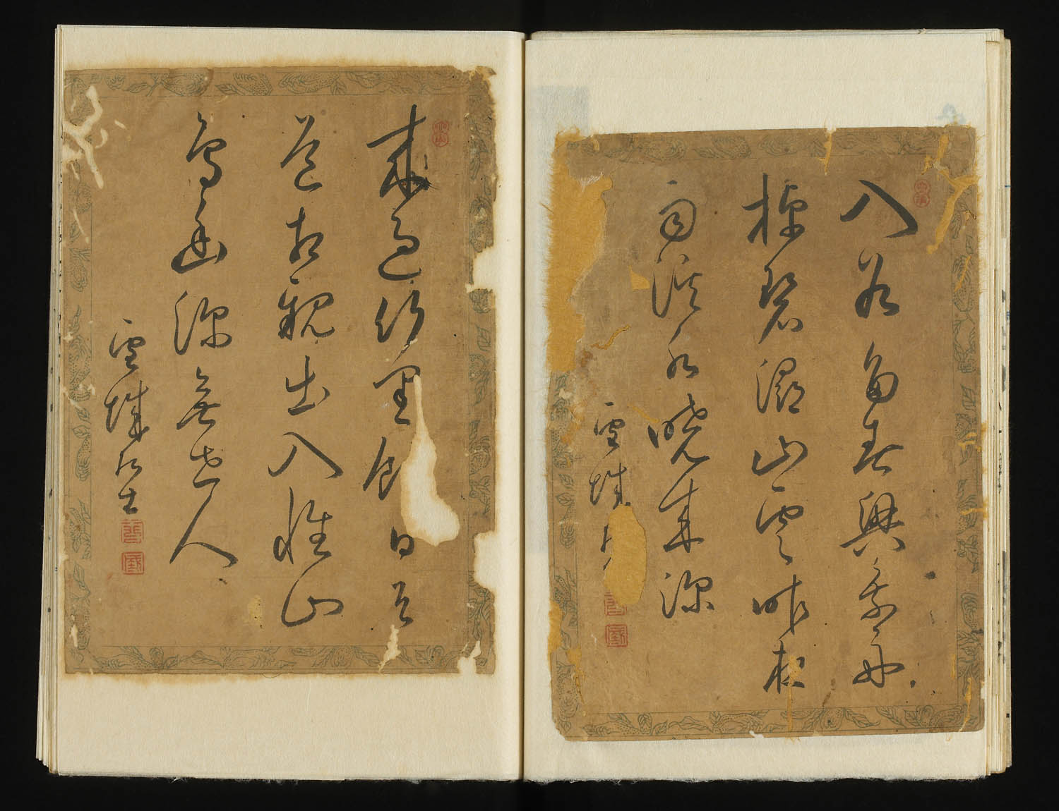 請求記号:チ6−4415−(1〜61) ; 東京の古書肆、文行堂横尾勇之助が戦前に収集した江戸時代・明治時代の文人・学者などの自筆一枚物資料の貼込帖61冊。一つ一つは短冊や署名、小書簡など短い資料であるが「捨て難い」ところから集められとっておかれた。戦争中は地中に埋め難をのがれたという逸話も伝わっている。収録されている著者の一部をあげると、国学者の山崎美成、屋代弘賢、前田夏蔭、狩谷■(木偏に夜)斎、書家の巻菱湖、俳人松木淡々、明治の人では幸田露伴、仮名垣魯文、乃木希典、中村正直、守田宝丹など多彩な1000人近い顔ぶれの自筆資料がみられ、いずれも未公開のものである。
