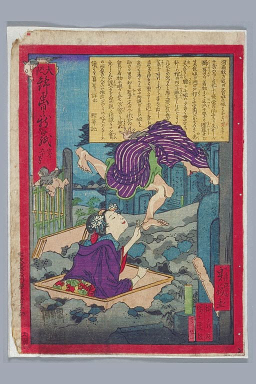 一方、芳年は明治期浮世絵界を代表する絵師として近年とみに声価の高い人物であり、研究も盛んである。若くし て浮世絵界の寵児となり、 持てる才能を存分に示したが、余りの多忙故、その生涯に度々狂気に侵された。『郵便報知』の時期は、 丁度、病より回復したばかりで、「大蘇」の号はその事情によるものだという。