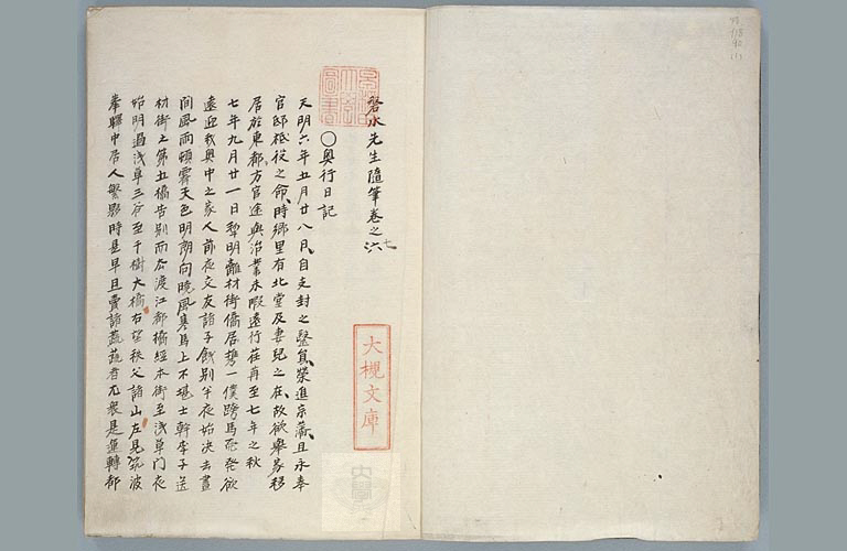 請求記号:文庫08 A38、B1 ; 大きさ:26×84 ; 解説文:もと20巻10冊、大槻家旧蔵6冊、岡村氏旧蔵3冊。岡村本は宇田川家旧蔵と伝える。大槻家より借覧のままになったものか。いま合してもとの如くなるも、なお13・14巻の1冊を欠く。