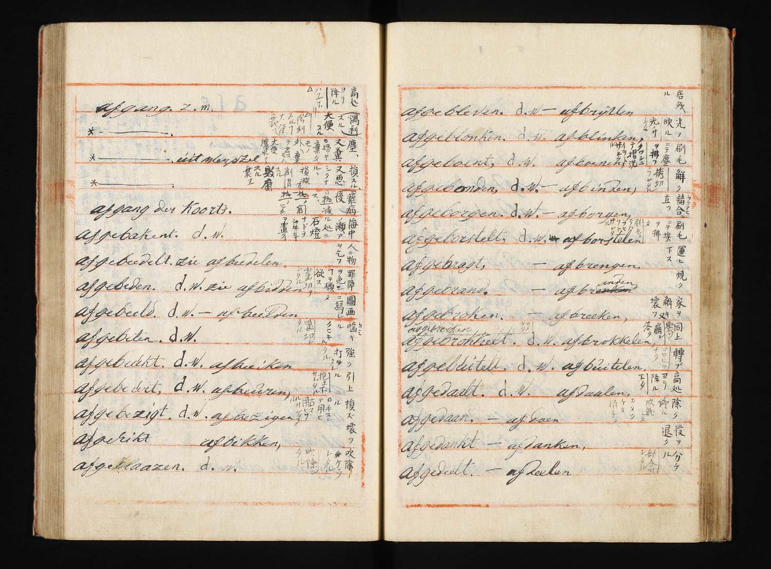 解説:波留麻和解(はるまわげ)は寛政8年(1796)に成立したわが国最初の蘭和辞書である。蘭学者稲村三伯(1759-1811)が石井恒右衛門、宇田川玄随らの協力を得て、オランダの出版業者フランソワ・ハルマ Francois Halma(1653-1722)の著わした蘭仏辞典 Woordenboek der Nederduitsche en Fransche Taale, 1708 を底本として、オランダ語の見出し語一つ一つに和訳語をあてたものである。また、稲村三伯のものとは別に、オランダ商館長ヘンデレキ・ドゥーフの指導のもとに、同じハルマの蘭仏辞典を用いて中山得十郎、吉雄権之助らが文化13年(1816)に完成させた蘭和辞書を「ドゥーフハルマ」もしくは「長崎ハルマ」と通称し、稲村三伯のものはこれに対して「江戸ハルマ」と呼ばれる。「波留麻和解」はその後の蘭学の発達や海外文献の翻訳の進展に、おおいに与って力があり、大きな影響を与えた文化史的意義の大きな資料である。たとえば、オランダ語の「ナトゥール」(natuur)に、もともと中国語で道教的な意味を持っていた「自然」という訳語をあてたのも、この「波留麻和解」においてであり、西洋文明と近代文明を受容してゆく過程において、日本語を大きく変え、ひいては日本人の意識を変える原動力ともなった書物ということができる。