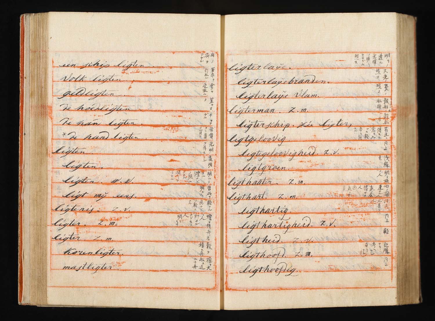 解説:波留麻和解(はるまわげ)は寛政8年(1796)に成立したわが国最初の蘭和辞書である。蘭学者稲村三伯(1759-1811)が石井恒右衛門、宇田川玄随らの協力を得て、オランダの出版業者フランソワ・ハルマ Francois Halma(1653-1722)の著わした蘭仏辞典 Woordenboek der Nederduitsche en Fransche Taale, 1708 を底本として、オランダ語の見出し語一つ一つに和訳語をあてたものである。また、稲村三伯のものとは別に、オランダ商館長ヘンデレキ・ドゥーフの指導のもとに、同じハルマの蘭仏辞典を用いて中山得十郎、吉雄権之助らが文化13年(1816)に完成させた蘭和辞書を「ドゥーフハルマ」もしくは「長崎ハルマ」と通称し、稲村三伯のものはこれに対して「江戸ハルマ」と呼ばれる。「波留麻和解」はその後の蘭学の発達や海外文献の翻訳の進展に、おおいに与って力があり、大きな影響を与えた文化史的意義の大きな資料である。たとえば、オランダ語の「ナトゥール」(natuur)に、もともと中国語で道教的な意味を持っていた「自然」という訳語をあてたのも、この「波留麻和解」においてであり、西洋文明と近代文明を受容してゆく過程において、日本語を大きく変え、ひいては日本人の意識を変える原動力ともなった書物ということができる。