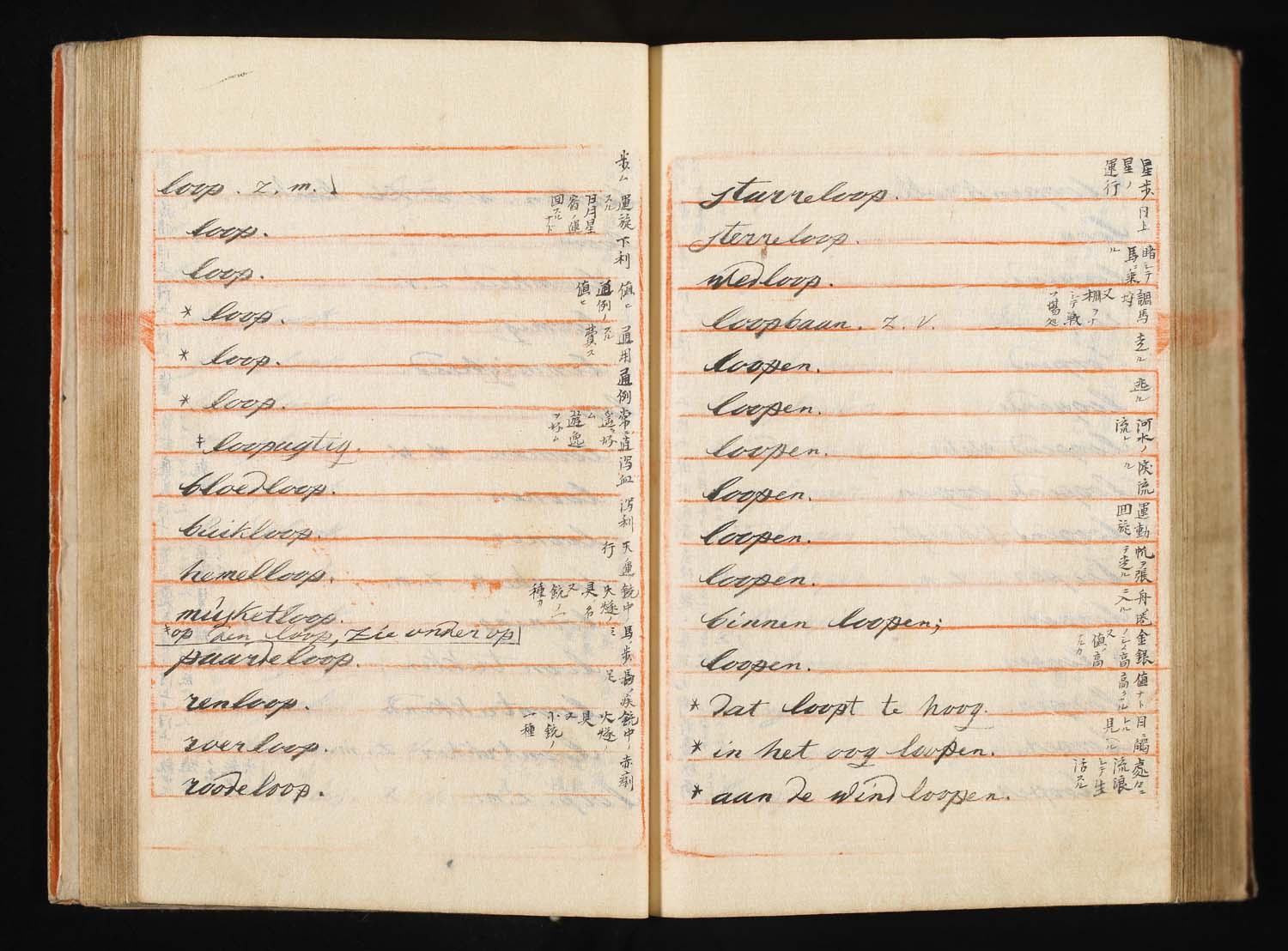 解説:波留麻和解(はるまわげ)は寛政8年(1796)に成立したわが国最初の蘭和辞書である。蘭学者稲村三伯(1759-1811)が石井恒右衛門、宇田川玄随らの協力を得て、オランダの出版業者フランソワ・ハルマ Francois Halma(1653-1722)の著わした蘭仏辞典 Woordenboek der Nederduitsche en Fransche Taale, 1708 を底本として、オランダ語の見出し語一つ一つに和訳語をあてたものである。また、稲村三伯のものとは別に、オランダ商館長ヘンデレキ・ドゥーフの指導のもとに、同じハルマの蘭仏辞典を用いて中山得十郎、吉雄権之助らが文化13年(1816)に完成させた蘭和辞書を「ドゥーフハルマ」もしくは「長崎ハルマ」と通称し、稲村三伯のものはこれに対して「江戸ハルマ」と呼ばれる。「波留麻和解」はその後の蘭学の発達や海外文献の翻訳の進展に、おおいに与って力があり、大きな影響を与えた文化史的意義の大きな資料である。たとえば、オランダ語の「ナトゥール」(natuur)に、もともと中国語で道教的な意味を持っていた「自然」という訳語をあてたのも、この「波留麻和解」においてであり、西洋文明と近代文明を受容してゆく過程において、日本語を大きく変え、ひいては日本人の意識を変える原動力ともなった書物ということができる。