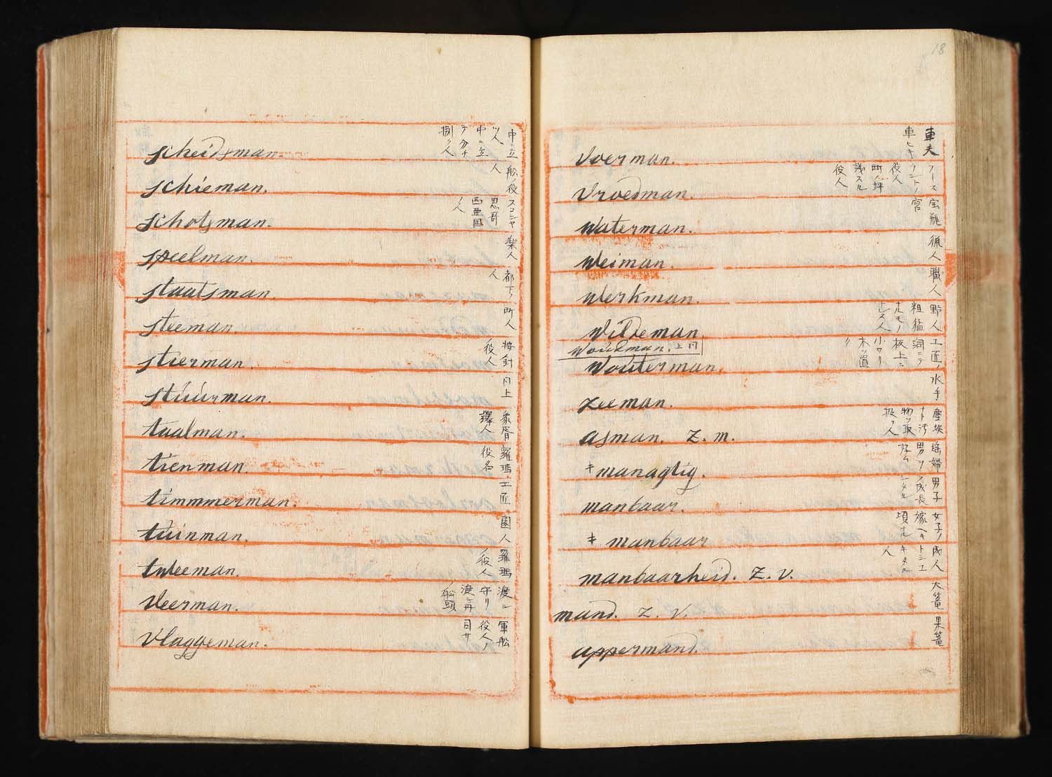 解説:波留麻和解(はるまわげ)は寛政8年(1796)に成立したわが国最初の蘭和辞書である。蘭学者稲村三伯(1759-1811)が石井恒右衛門、宇田川玄随らの協力を得て、オランダの出版業者フランソワ・ハルマ Francois Halma(1653-1722)の著わした蘭仏辞典 Woordenboek der Nederduitsche en Fransche Taale, 1708 を底本として、オランダ語の見出し語一つ一つに和訳語をあてたものである。また、稲村三伯のものとは別に、オランダ商館長ヘンデレキ・ドゥーフの指導のもとに、同じハルマの蘭仏辞典を用いて中山得十郎、吉雄権之助らが文化13年(1816)に完成させた蘭和辞書を「ドゥーフハルマ」もしくは「長崎ハルマ」と通称し、稲村三伯のものはこれに対して「江戸ハルマ」と呼ばれる。「波留麻和解」はその後の蘭学の発達や海外文献の翻訳の進展に、おおいに与って力があり、大きな影響を与えた文化史的意義の大きな資料である。たとえば、オランダ語の「ナトゥール」(natuur)に、もともと中国語で道教的な意味を持っていた「自然」という訳語をあてたのも、この「波留麻和解」においてであり、西洋文明と近代文明を受容してゆく過程において、日本語を大きく変え、ひいては日本人の意識を変える原動力ともなった書物ということができる。