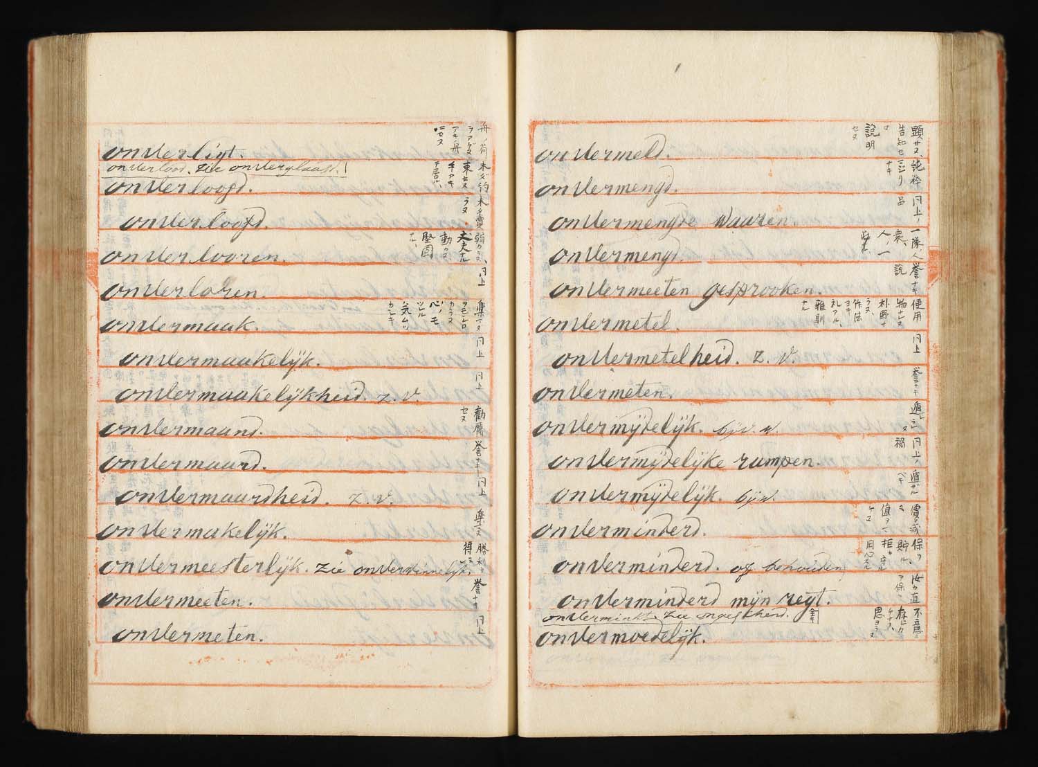 解説:波留麻和解(はるまわげ)は寛政8年(1796)に成立したわが国最初の蘭和辞書である。蘭学者稲村三伯(1759-1811)が石井恒右衛門、宇田川玄随らの協力を得て、オランダの出版業者フランソワ・ハルマ Francois Halma(1653-1722)の著わした蘭仏辞典 Woordenboek der Nederduitsche en Fransche Taale, 1708 を底本として、オランダ語の見出し語一つ一つに和訳語をあてたものである。また、稲村三伯のものとは別に、オランダ商館長ヘンデレキ・ドゥーフの指導のもとに、同じハルマの蘭仏辞典を用いて中山得十郎、吉雄権之助らが文化13年(1816)に完成させた蘭和辞書を「ドゥーフハルマ」もしくは「長崎ハルマ」と通称し、稲村三伯のものはこれに対して「江戸ハルマ」と呼ばれる。「波留麻和解」はその後の蘭学の発達や海外文献の翻訳の進展に、おおいに与って力があり、大きな影響を与えた文化史的意義の大きな資料である。たとえば、オランダ語の「ナトゥール」(natuur)に、もともと中国語で道教的な意味を持っていた「自然」という訳語をあてたのも、この「波留麻和解」においてであり、西洋文明と近代文明を受容してゆく過程において、日本語を大きく変え、ひいては日本人の意識を変える原動力ともなった書物ということができる。