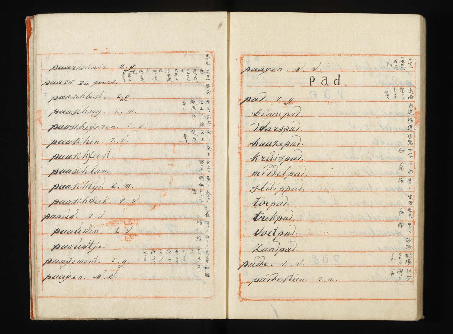 解説:波留麻和解(はるまわげ)は寛政8年(1796)に成立したわが国最初の蘭和辞書である。蘭学者稲村三伯(1759-1811)が石井恒右衛門、宇田川玄随らの協力を得て、オランダの出版業者フランソワ・ハルマ Francois Halma(1653-1722)の著わした蘭仏辞典 Woordenboek der Nederduitsche en Fransche Taale, 1708 を底本として、オランダ語の見出し語一つ一つに和訳語をあてたものである。また、稲村三伯のものとは別に、オランダ商館長ヘンデレキ・ドゥーフの指導のもとに、同じハルマの蘭仏辞典を用いて中山得十郎、吉雄権之助らが文化13年(1816)に完成させた蘭和辞書を「ドゥーフハルマ」もしくは「長崎ハルマ」と通称し、稲村三伯のものはこれに対して「江戸ハルマ」と呼ばれる。「波留麻和解」はその後の蘭学の発達や海外文献の翻訳の進展に、おおいに与って力があり、大きな影響を与えた文化史的意義の大きな資料である。たとえば、オランダ語の「ナトゥール」(natuur)に、もともと中国語で道教的な意味を持っていた「自然」という訳語をあてたのも、この「波留麻和解」においてであり、西洋文明と近代文明を受容してゆく過程において、日本語を大きく変え、ひいては日本人の意識を変える原動力ともなった書物ということができる。