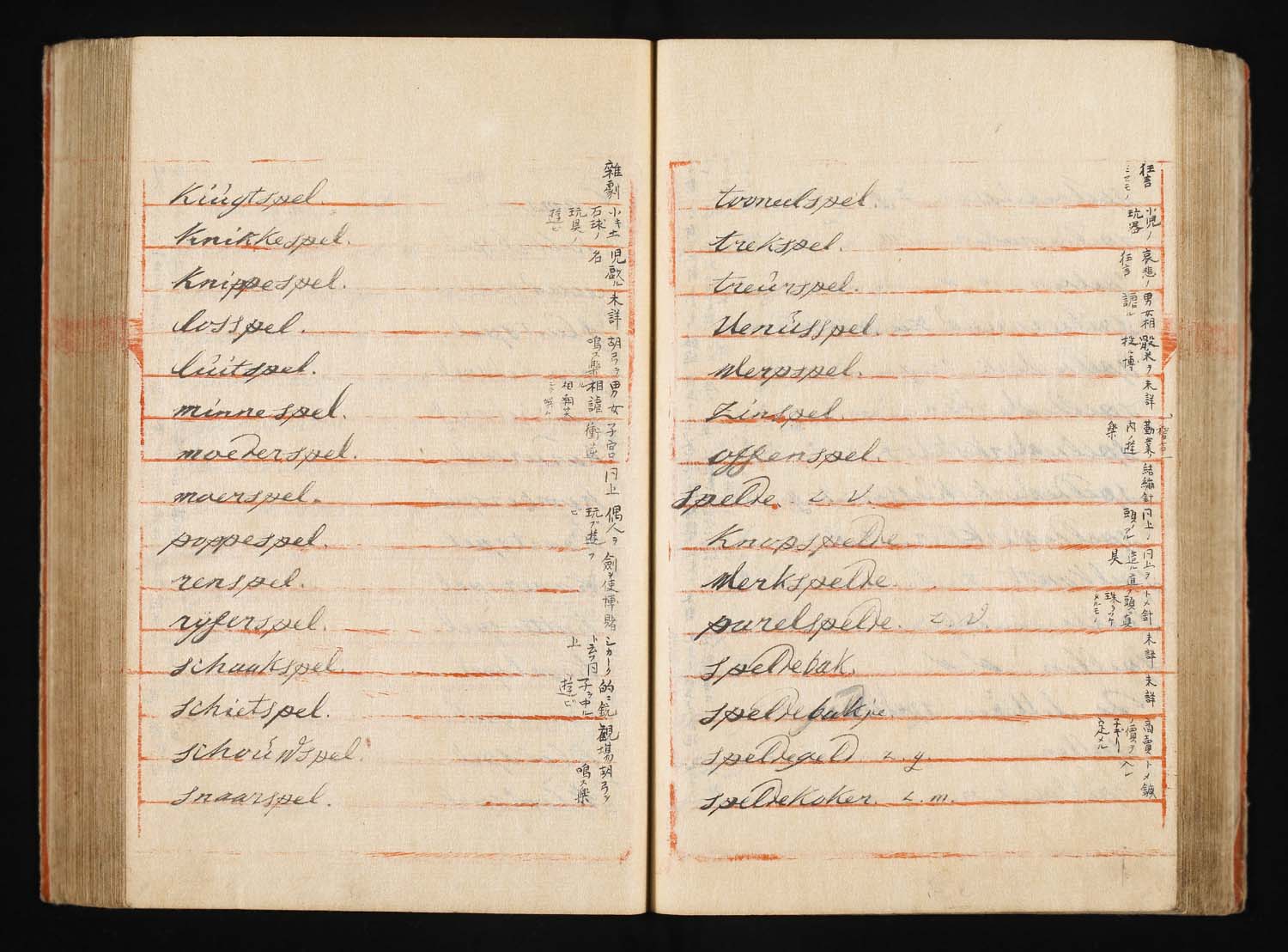 解説:波留麻和解(はるまわげ)は寛政8年(1796)に成立したわが国最初の蘭和辞書である。蘭学者稲村三伯(1759-1811)が石井恒右衛門、宇田川玄随らの協力を得て、オランダの出版業者フランソワ・ハルマ Francois Halma(1653-1722)の著わした蘭仏辞典 Woordenboek der Nederduitsche en Fransche Taale, 1708 を底本として、オランダ語の見出し語一つ一つに和訳語をあてたものである。また、稲村三伯のものとは別に、オランダ商館長ヘンデレキ・ドゥーフの指導のもとに、同じハルマの蘭仏辞典を用いて中山得十郎、吉雄権之助らが文化13年(1816)に完成させた蘭和辞書を「ドゥーフハルマ」もしくは「長崎ハルマ」と通称し、稲村三伯のものはこれに対して「江戸ハルマ」と呼ばれる。「波留麻和解」はその後の蘭学の発達や海外文献の翻訳の進展に、おおいに与って力があり、大きな影響を与えた文化史的意義の大きな資料である。たとえば、オランダ語の「ナトゥール」(natuur)に、もともと中国語で道教的な意味を持っていた「自然」という訳語をあてたのも、この「波留麻和解」においてであり、西洋文明と近代文明を受容してゆく過程において、日本語を大きく変え、ひいては日本人の意識を変える原動力ともなった書物ということができる。