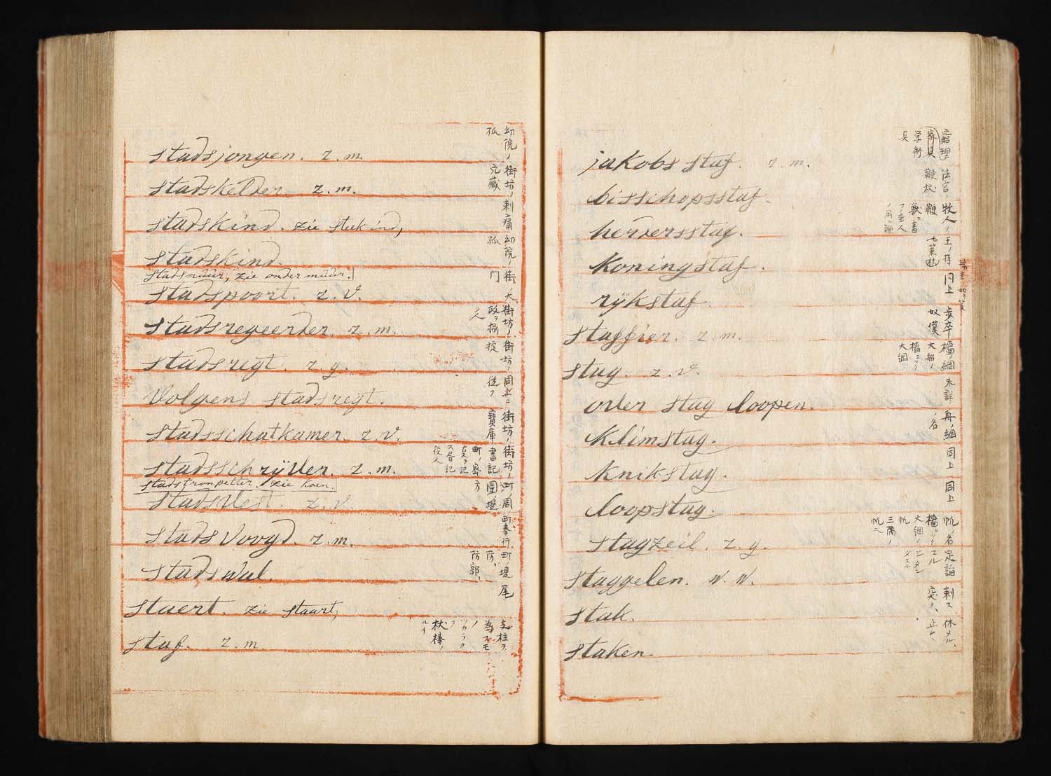 解説:波留麻和解(はるまわげ)は寛政8年(1796)に成立したわが国最初の蘭和辞書である。蘭学者稲村三伯(1759-1811)が石井恒右衛門、宇田川玄随らの協力を得て、オランダの出版業者フランソワ・ハルマ Francois Halma(1653-1722)の著わした蘭仏辞典 Woordenboek der Nederduitsche en Fransche Taale, 1708 を底本として、オランダ語の見出し語一つ一つに和訳語をあてたものである。また、稲村三伯のものとは別に、オランダ商館長ヘンデレキ・ドゥーフの指導のもとに、同じハルマの蘭仏辞典を用いて中山得十郎、吉雄権之助らが文化13年(1816)に完成させた蘭和辞書を「ドゥーフハルマ」もしくは「長崎ハルマ」と通称し、稲村三伯のものはこれに対して「江戸ハルマ」と呼ばれる。「波留麻和解」はその後の蘭学の発達や海外文献の翻訳の進展に、おおいに与って力があり、大きな影響を与えた文化史的意義の大きな資料である。たとえば、オランダ語の「ナトゥール」(natuur)に、もともと中国語で道教的な意味を持っていた「自然」という訳語をあてたのも、この「波留麻和解」においてであり、西洋文明と近代文明を受容してゆく過程において、日本語を大きく変え、ひいては日本人の意識を変える原動力ともなった書物ということができる。