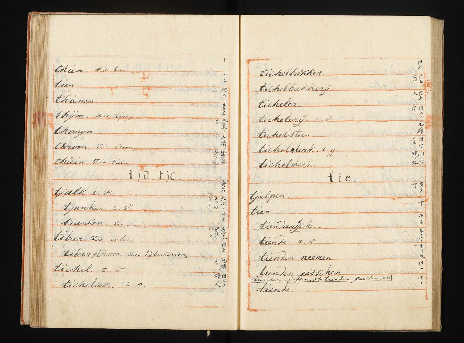 解説:波留麻和解(はるまわげ)は寛政8年(1796)に成立したわが国最初の蘭和辞書である。蘭学者稲村三伯(1759-1811)が石井恒右衛門、宇田川玄随らの協力を得て、オランダの出版業者フランソワ・ハルマ Francois Halma(1653-1722)の著わした蘭仏辞典 Woordenboek der Nederduitsche en Fransche Taale, 1708 を底本として、オランダ語の見出し語一つ一つに和訳語をあてたものである。また、稲村三伯のものとは別に、オランダ商館長ヘンデレキ・ドゥーフの指導のもとに、同じハルマの蘭仏辞典を用いて中山得十郎、吉雄権之助らが文化13年(1816)に完成させた蘭和辞書を「ドゥーフハルマ」もしくは「長崎ハルマ」と通称し、稲村三伯のものはこれに対して「江戸ハルマ」と呼ばれる。「波留麻和解」はその後の蘭学の発達や海外文献の翻訳の進展に、おおいに与って力があり、大きな影響を与えた文化史的意義の大きな資料である。たとえば、オランダ語の「ナトゥール」(natuur)に、もともと中国語で道教的な意味を持っていた「自然」という訳語をあてたのも、この「波留麻和解」においてであり、西洋文明と近代文明を受容してゆく過程において、日本語を大きく変え、ひいては日本人の意識を変える原動力ともなった書物ということができる。