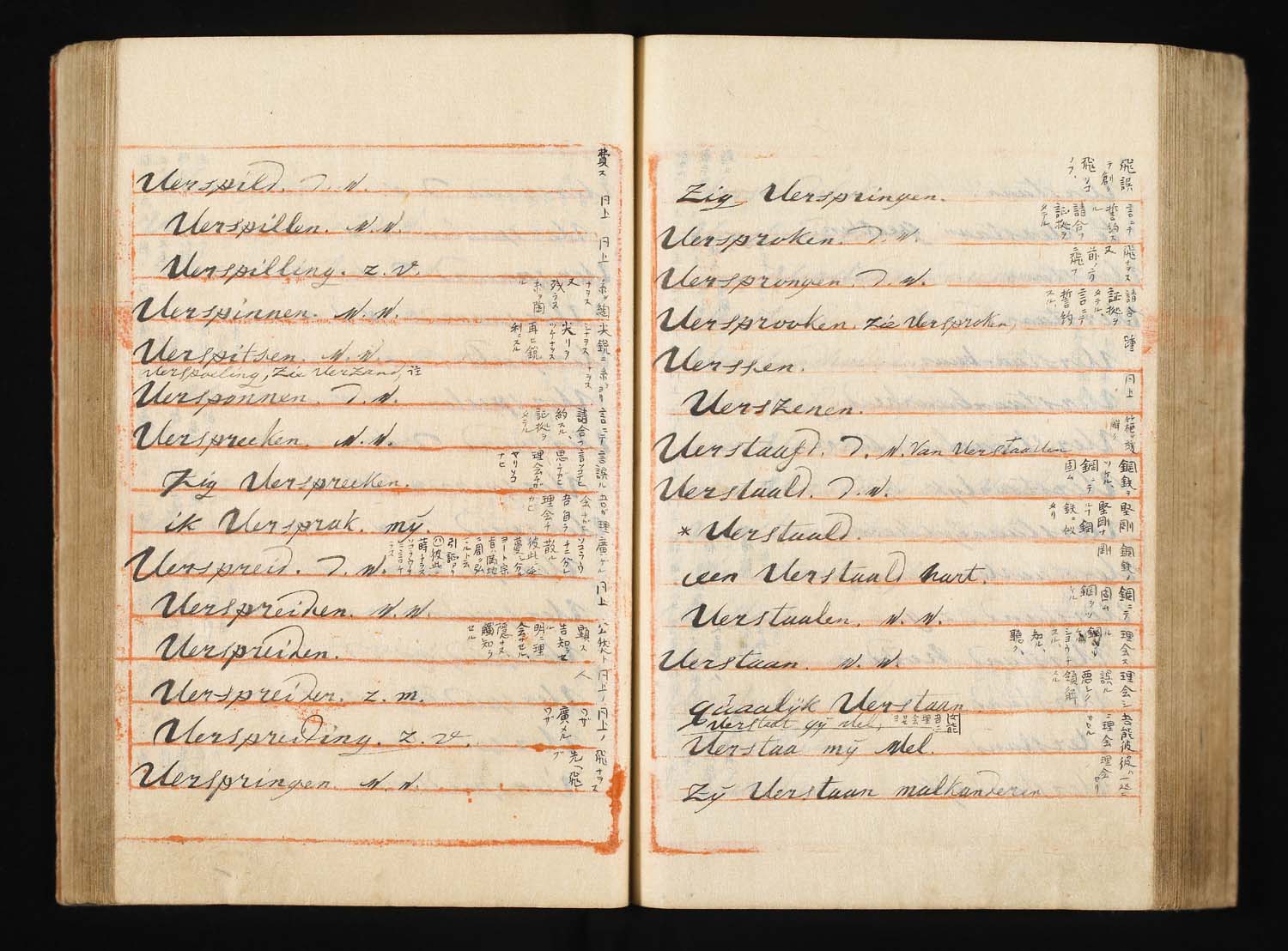 解説:波留麻和解(はるまわげ)は寛政8年(1796)に成立したわが国最初の蘭和辞書である。蘭学者稲村三伯(1759-1811)が石井恒右衛門、宇田川玄随らの協力を得て、オランダの出版業者フランソワ・ハルマ Francois Halma(1653-1722)の著わした蘭仏辞典 Woordenboek der Nederduitsche en Fransche Taale, 1708 を底本として、オランダ語の見出し語一つ一つに和訳語をあてたものである。また、稲村三伯のものとは別に、オランダ商館長ヘンデレキ・ドゥーフの指導のもとに、同じハルマの蘭仏辞典を用いて中山得十郎、吉雄権之助らが文化13年(1816)に完成させた蘭和辞書を「ドゥーフハルマ」もしくは「長崎ハルマ」と通称し、稲村三伯のものはこれに対して「江戸ハルマ」と呼ばれる。「波留麻和解」はその後の蘭学の発達や海外文献の翻訳の進展に、おおいに与って力があり、大きな影響を与えた文化史的意義の大きな資料である。たとえば、オランダ語の「ナトゥール」(natuur)に、もともと中国語で道教的な意味を持っていた「自然」という訳語をあてたのも、この「波留麻和解」においてであり、西洋文明と近代文明を受容してゆく過程において、日本語を大きく変え、ひいては日本人の意識を変える原動力ともなった書物ということができる。