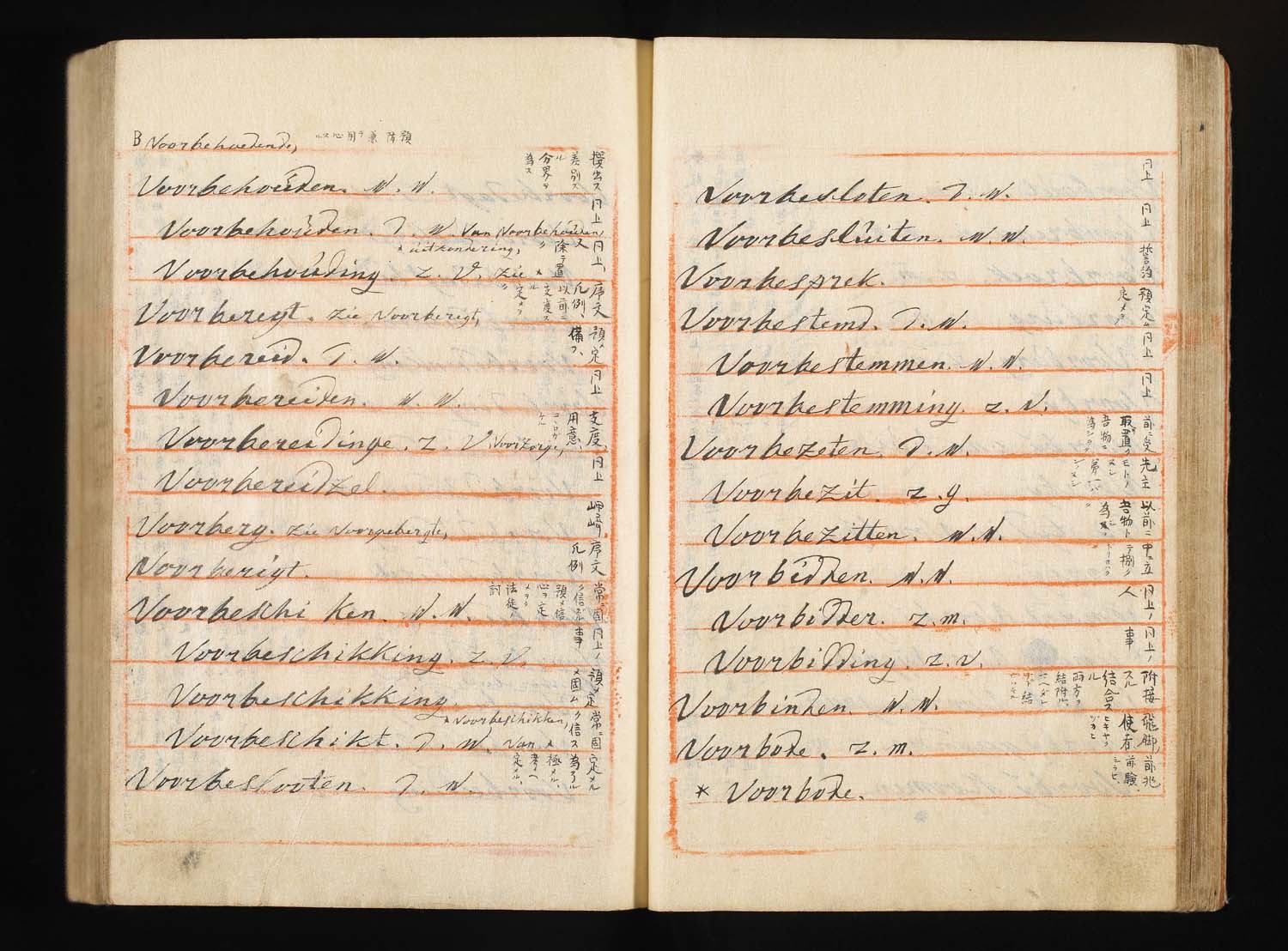 解説:波留麻和解(はるまわげ)は寛政8年(1796)に成立したわが国最初の蘭和辞書である。蘭学者稲村三伯(1759-1811)が石井恒右衛門、宇田川玄随らの協力を得て、オランダの出版業者フランソワ・ハルマ Francois Halma(1653-1722)の著わした蘭仏辞典 Woordenboek der Nederduitsche en Fransche Taale, 1708 を底本として、オランダ語の見出し語一つ一つに和訳語をあてたものである。また、稲村三伯のものとは別に、オランダ商館長ヘンデレキ・ドゥーフの指導のもとに、同じハルマの蘭仏辞典を用いて中山得十郎、吉雄権之助らが文化13年(1816)に完成させた蘭和辞書を「ドゥーフハルマ」もしくは「長崎ハルマ」と通称し、稲村三伯のものはこれに対して「江戸ハルマ」と呼ばれる。「波留麻和解」はその後の蘭学の発達や海外文献の翻訳の進展に、おおいに与って力があり、大きな影響を与えた文化史的意義の大きな資料である。たとえば、オランダ語の「ナトゥール」(natuur)に、もともと中国語で道教的な意味を持っていた「自然」という訳語をあてたのも、この「波留麻和解」においてであり、西洋文明と近代文明を受容してゆく過程において、日本語を大きく変え、ひいては日本人の意識を変える原動力ともなった書物ということができる。