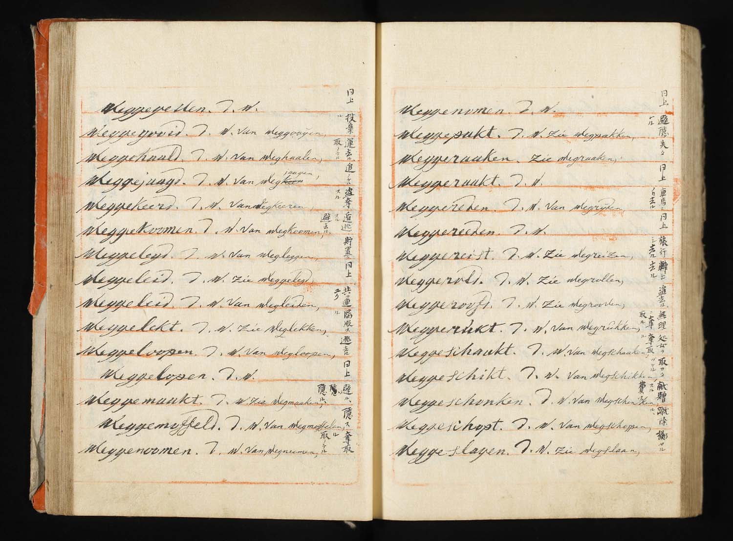 解説:波留麻和解(はるまわげ)は寛政8年(1796)に成立したわが国最初の蘭和辞書である。蘭学者稲村三伯(1759-1811)が石井恒右衛門、宇田川玄随らの協力を得て、オランダの出版業者フランソワ・ハルマ Francois Halma(1653-1722)の著わした蘭仏辞典 Woordenboek der Nederduitsche en Fransche Taale, 1708 を底本として、オランダ語の見出し語一つ一つに和訳語をあてたものである。また、稲村三伯のものとは別に、オランダ商館長ヘンデレキ・ドゥーフの指導のもとに、同じハルマの蘭仏辞典を用いて中山得十郎、吉雄権之助らが文化13年(1816)に完成させた蘭和辞書を「ドゥーフハルマ」もしくは「長崎ハルマ」と通称し、稲村三伯のものはこれに対して「江戸ハルマ」と呼ばれる。「波留麻和解」はその後の蘭学の発達や海外文献の翻訳の進展に、おおいに与って力があり、大きな影響を与えた文化史的意義の大きな資料である。たとえば、オランダ語の「ナトゥール」(natuur)に、もともと中国語で道教的な意味を持っていた「自然」という訳語をあてたのも、この「波留麻和解」においてであり、西洋文明と近代文明を受容してゆく過程において、日本語を大きく変え、ひいては日本人の意識を変える原動力ともなった書物ということができる。