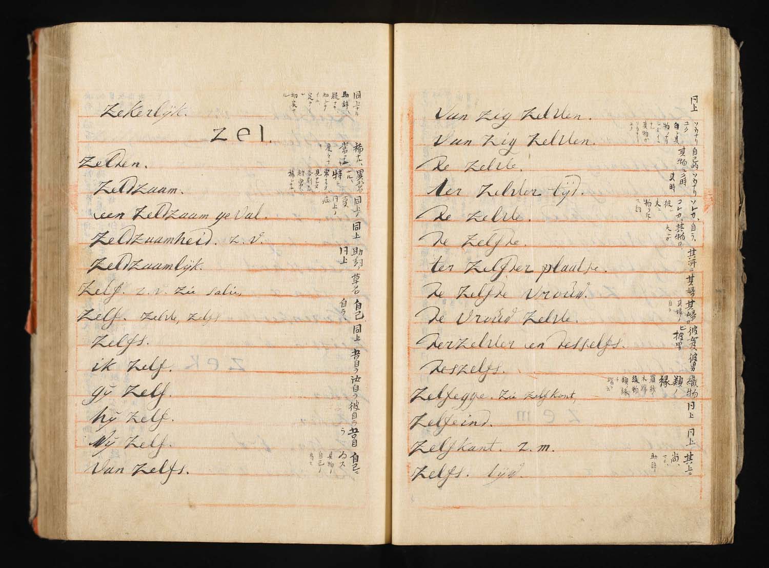 解説:波留麻和解(はるまわげ)は寛政8年(1796)に成立したわが国最初の蘭和辞書である。蘭学者稲村三伯(1759-1811)が石井恒右衛門、宇田川玄随らの協力を得て、オランダの出版業者フランソワ・ハルマ Francois Halma(1653-1722)の著わした蘭仏辞典 Woordenboek der Nederduitsche en Fransche Taale, 1708 を底本として、オランダ語の見出し語一つ一つに和訳語をあてたものである。また、稲村三伯のものとは別に、オランダ商館長ヘンデレキ・ドゥーフの指導のもとに、同じハルマの蘭仏辞典を用いて中山得十郎、吉雄権之助らが文化13年(1816)に完成させた蘭和辞書を「ドゥーフハルマ」もしくは「長崎ハルマ」と通称し、稲村三伯のものはこれに対して「江戸ハルマ」と呼ばれる。「波留麻和解」はその後の蘭学の発達や海外文献の翻訳の進展に、おおいに与って力があり、大きな影響を与えた文化史的意義の大きな資料である。たとえば、オランダ語の「ナトゥール」(natuur)に、もともと中国語で道教的な意味を持っていた「自然」という訳語をあてたのも、この「波留麻和解」においてであり、西洋文明と近代文明を受容してゆく過程において、日本語を大きく変え、ひいては日本人の意識を変える原動力ともなった書物ということができる。