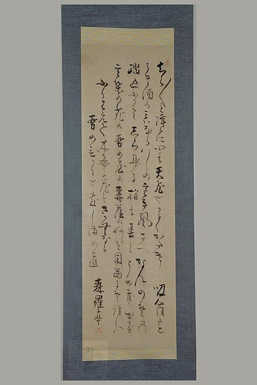 請求記号:文庫08 B157 ; 大きさ:31×101 ; 解説文:戯作者森羅亭万象は、森島中良として知られる。桂川国端の弟、甫粲。平賀源内の門弟であり二世風来山人、狂歌名を竹杖為軽といった。兄の家に寄寓し、生涯独身を通した。相撲番付では行司、芝居番付では「三浦の片貝」を勤める。「紅毛雑話」・「蛮語箋」等の著がある。岡村千曳旧蔵。 ;