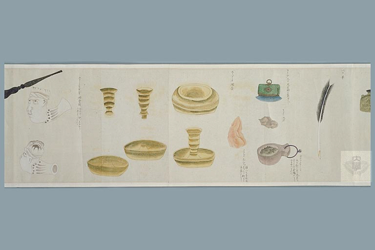 請求記号:文庫08 J21 ; 製作・刊行年等:寛政6年 ; 数量:二巻 ; 材質:紙本彩色 ; 解説文:光太夫のロシアにおける見聞を桂川国瑞(1751-1809)が記録し、オランダ書の世界地誌により補訂して体系的に編集した『北槎聞略』は当時のロシア事情のすぐれた紹介の書であった。本書はそれに付された図である。