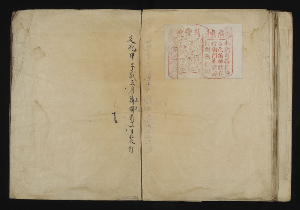 請求記号:文庫08 J53(1 2) ; 製作・刊行年等:文化元年 ; 数量:二冊 ; 材質:紙本彩色 ; 大きさ:27×22.6 ; 解説文:森島中良(1754-1810)は桂川国瑞の弟で、蘭学者としてのみならず、森羅万象、二世風来山人などの号をもつ戯作者としても名高い。長崎に舶載された珍しい品物の広告や商標、蘭文など雑多なものが貼り込まれている。 |