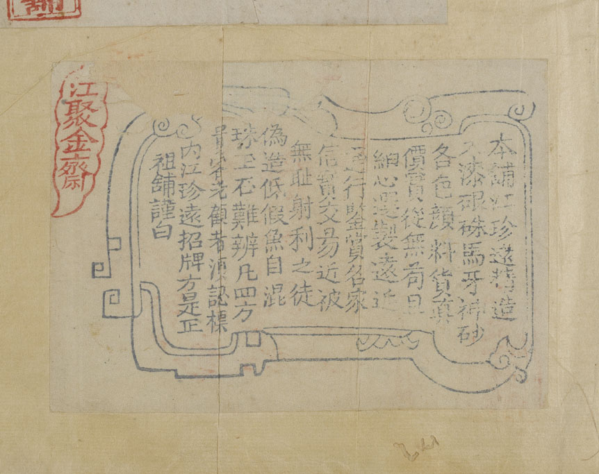 請求記号:文庫08 J53(1 2) ; 製作・刊行年等:文化元年 ; 数量:二冊 ; 材質:紙本彩色 ; 大きさ:27×22.6 ; 解説文:森島中良(1754-1810)は桂川国瑞の弟で、蘭学者としてのみならず、森羅万象、二世風来山人などの号をもつ戯作者としても名高い。長崎に舶載された珍しい品物の広告や商標、蘭文など雑多なものが貼り込まれている。 |