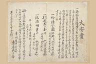制作刊行年等: ; 出版地等:常州府中 ; 請求記号:文庫10 8016 1 ; 材質: ; 数量:1枚 ; 大きさ:25×32cm ; 解説文:常州府中の酒屋新装開店記念大安売の引札。3日間を限った安売で、当日は樽割にして売るので「御入物持参下さるべく候」とある。 ; Fuchu in Hitachi province ; 1 sheet ; 25×32cm ; Ad for a special bargain sale by a sake dealer in Fuchu (present-day Ibaraki prefecture) to commemorate the remodeling of his store. It says sake will be sold at reduced price for a limited period of three days and asks everyone to "please bring a container with you" because it would be sold directly from the casks.