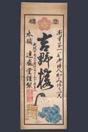 制作刊行年等: ; 出版地等:大阪・進盛堂 ; 請求記号:文庫10 8173 ; 材質: ; 数量:1枚 ; 大きさ:75×28cm ; 解説文:粉末洗髪料のポスター。髪洗粉としては、古くからフノリの粉末にメリケン粉等をまぜたものが用いられてきた。当時の洗髪の様子がよくわかる。 ; Shinseido (Osaka) ; 1 sheet ; 75×28cm ; Poster for a shampoo powder called "Yoshino-zakura" (Yoshino Cherry Blossoms). Since ancient times, the common shampoo consisted of powdered funori (glue plant) mixed with flour and other ingredients. The illustration shows clearly how women washed their hair in those days.