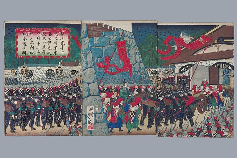 Tokugawa-ke jugo-dai no shogun Yoshinobu-ko tsutsushimite koreniyorite Keio 4 (1868) tatsu no toshi 4-gatsu 11-nichi u no jokoku nishi no shiro hokan no zu |
