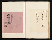 請求記号:チ6−4415−(1〜61) ; 東京の古書肆、文行堂横尾勇之助が戦前に収集した江戸時代・明治時代の文人・学者などの自筆一枚物資料の貼込帖61冊。一つ一つは短冊や署名、小書簡など短い資料であるが「捨て難い」ところから集められとっておかれた。戦争中は地中に埋め難をのがれたという逸話も伝わっている。収録されている著者の一部をあげると、国学者の山崎美成、屋代弘賢、前田夏蔭、狩谷■(木偏に夜)斎、書家の巻菱湖、俳人松木淡々、明治の人では幸田露伴、仮名垣魯文、乃木希典、中村正直、守田宝丹など多彩な1000人近い顔ぶれの自筆資料がみられ、いずれも未公開のものである。
