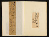 請求記号:チ6−4415−(1〜61) ; 東京の古書肆、文行堂横尾勇之助が戦前に収集した江戸時代・明治時代の文人・学者などの自筆一枚物資料の貼込帖61冊。一つ一つは短冊や署名、小書簡など短い資料であるが「捨て難い」ところから集められとっておかれた。戦争中は地中に埋め難をのがれたという逸話も伝わっている。収録されている著者の一部をあげると、国学者の山崎美成、屋代弘賢、前田夏蔭、狩谷■(木偏に夜)斎、書家の巻菱湖、俳人松木淡々、明治の人では幸田露伴、仮名垣魯文、乃木希典、中村正直、守田宝丹など多彩な1000人近い顔ぶれの自筆資料がみられ、いずれも未公開のものである。