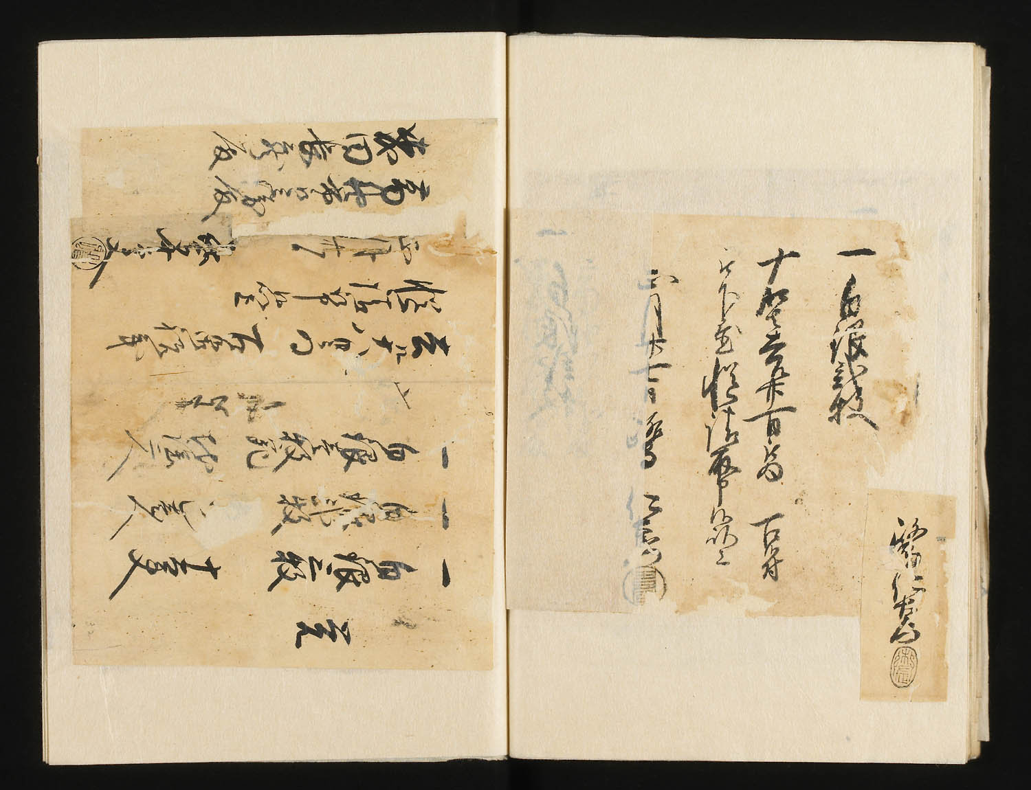 請求記号:チ6−4415−(1〜61) ; 東京の古書肆、文行堂横尾勇之助が戦前に収集した江戸時代・明治時代の文人・学者などの自筆一枚物資料の貼込帖61冊。一つ一つは短冊や署名、小書簡など短い資料であるが「捨て難い」ところから集められとっておかれた。戦争中は地中に埋め難をのがれたという逸話も伝わっている。収録されている著者の一部をあげると、国学者の山崎美成、屋代弘賢、前田夏蔭、狩谷■(木偏に夜)斎、書家の巻菱湖、俳人松木淡々、明治の人では幸田露伴、仮名垣魯文、乃木希典、中村正直、守田宝丹など多彩な1000人近い顔ぶれの自筆資料がみられ、いずれも未公開のものである。