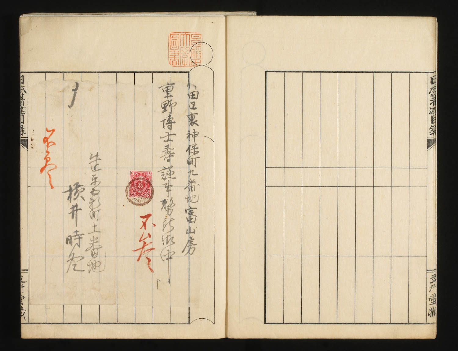 請求記号:チ6−4415−(1〜61) ; 東京の古書肆、文行堂横尾勇之助が戦前に収集した江戸時代・明治時代の文人・学者などの自筆一枚物資料の貼込帖61冊。一つ一つは短冊や署名、小書簡など短い資料であるが「捨て難い」ところから集められとっておかれた。戦争中は地中に埋め難をのがれたという逸話も伝わっている。収録されている著者の一部をあげると、国学者の山崎美成、屋代弘賢、前田夏蔭、狩谷■(木偏に夜)斎、書家の巻菱湖、俳人松木淡々、明治の人では幸田露伴、仮名垣魯文、乃木希典、中村正直、守田宝丹など多彩な1000人近い顔ぶれの自筆資料がみられ、いずれも未公開のものである。