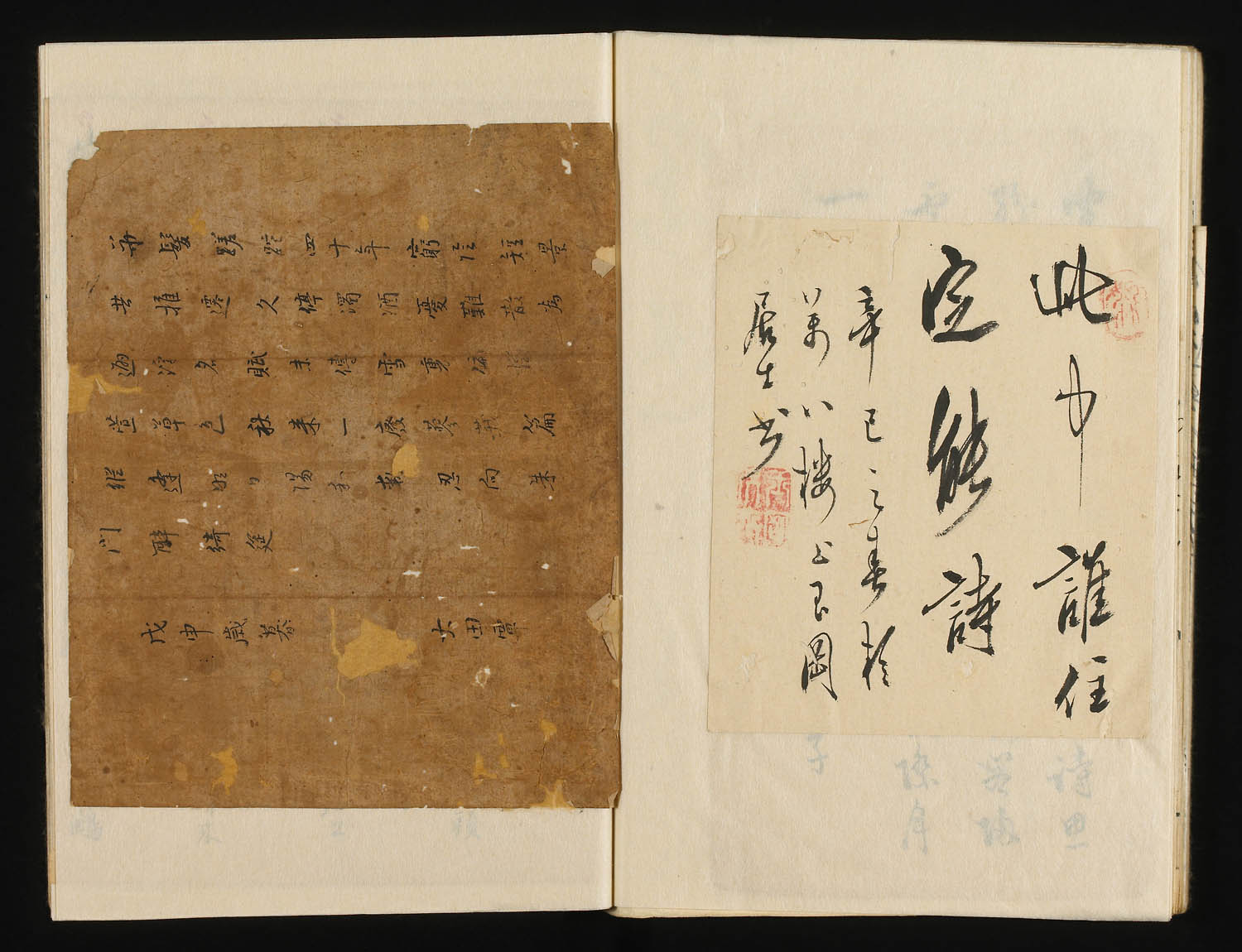 請求記号:チ6−4415−(1〜61) ; 東京の古書肆、文行堂横尾勇之助が戦前に収集した江戸時代・明治時代の文人・学者などの自筆一枚物資料の貼込帖61冊。一つ一つは短冊や署名、小書簡など短い資料であるが「捨て難い」ところから集められとっておかれた。戦争中は地中に埋め難をのがれたという逸話も伝わっている。収録されている著者の一部をあげると、国学者の山崎美成、屋代弘賢、前田夏蔭、狩谷■(木偏に夜)斎、書家の巻菱湖、俳人松木淡々、明治の人では幸田露伴、仮名垣魯文、乃木希典、中村正直、守田宝丹など多彩な1000人近い顔ぶれの自筆資料がみられ、いずれも未公開のものである。