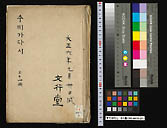 請求記号:チ6−4415−(1〜61) ; 東京の古書肆、文行堂横尾勇之助が戦前に収集した江戸時代・明治時代の文人・学者などの自筆一枚物資料の貼込帖61冊。一つ一つは短冊や署名、小書簡など短い資料であるが「捨て難い」ところから集められとっておかれた。戦争中は地中に埋め難をのがれたという逸話も伝わっている。収録されている著者の一部をあげると、国学者の山崎美成、屋代弘賢、前田夏蔭、狩谷■(木偏に夜)斎、書家の巻菱湖、俳人松木淡々、明治の人では幸田露伴、仮名垣魯文、乃木希典、中村正直、守田宝丹など多彩な1000人近い顔ぶれの自筆資料がみられ、いずれも未公開のものである。