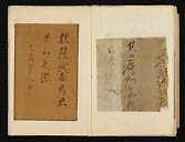 請求記号:チ6−4415−(1〜61) ; 東京の古書肆、文行堂横尾勇之助が戦前に収集した江戸時代・明治時代の文人・学者などの自筆一枚物資料の貼込帖61冊。一つ一つは短冊や署名、小書簡など短い資料であるが「捨て難い」ところから集められとっておかれた。戦争中は地中に埋め難をのがれたという逸話も伝わっている。収録されている著者の一部をあげると、国学者の山崎美成、屋代弘賢、前田夏蔭、狩谷■(木偏に夜)斎、書家の巻菱湖、俳人松木淡々、明治の人では幸田露伴、仮名垣魯文、乃木希典、中村正直、守田宝丹など多彩な1000人近い顔ぶれの自筆資料がみられ、いずれも未公開のものである。