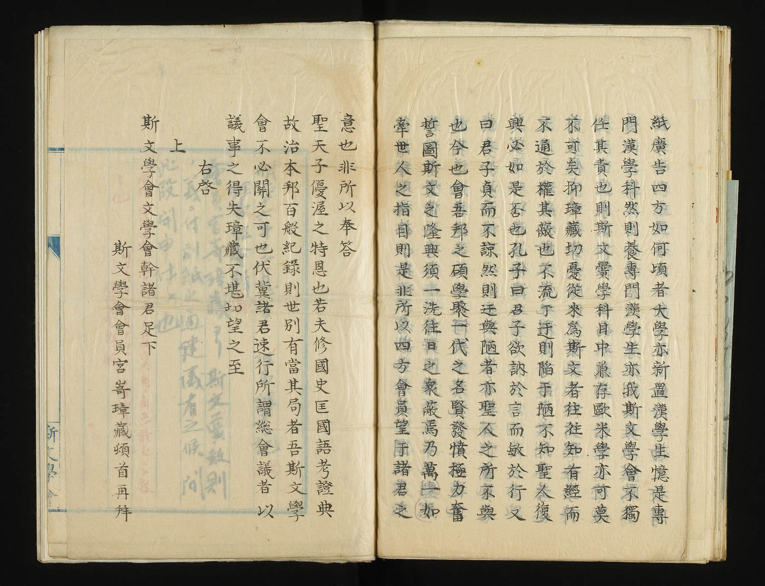 請求記号:チ6−4415−(1〜61) ; 東京の古書肆、文行堂横尾勇之助が戦前に収集した江戸時代・明治時代の文人・学者などの自筆一枚物資料の貼込帖61冊。一つ一つは短冊や署名、小書簡など短い資料であるが「捨て難い」ところから集められとっておかれた。戦争中は地中に埋め難をのがれたという逸話も伝わっている。収録されている著者の一部をあげると、国学者の山崎美成、屋代弘賢、前田夏蔭、狩谷■(木偏に夜)斎、書家の巻菱湖、俳人松木淡々、明治の人では幸田露伴、仮名垣魯文、乃木希典、中村正直、守田宝丹など多彩な1000人近い顔ぶれの自筆資料がみられ、いずれも未公開のものである。