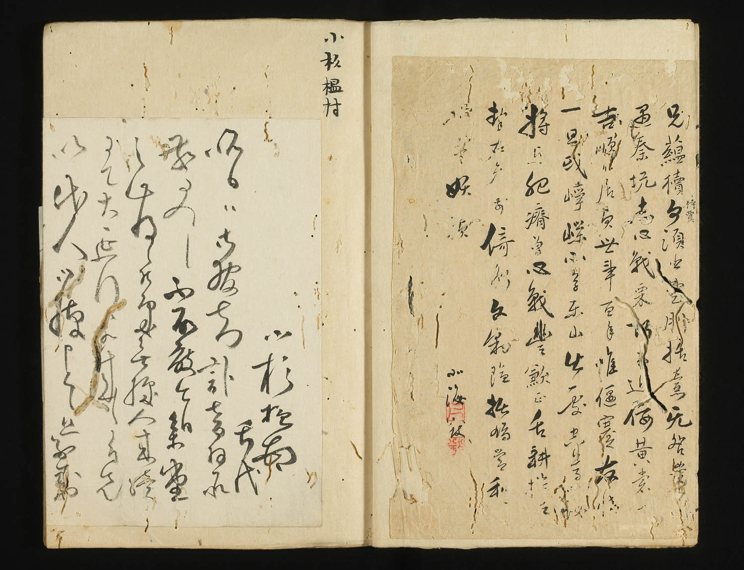 請求記号:チ6−4415−(1〜61) ; 東京の古書肆、文行堂横尾勇之助が戦前に収集した江戸時代・明治時代の文人・学者などの自筆一枚物資料の貼込帖61冊。一つ一つは短冊や署名、小書簡など短い資料であるが「捨て難い」ところから集められとっておかれた。戦争中は地中に埋め難をのがれたという逸話も伝わっている。収録されている著者の一部をあげると、国学者の山崎美成、屋代弘賢、前田夏蔭、狩谷■(木偏に夜)斎、書家の巻菱湖、俳人松木淡々、明治の人では幸田露伴、仮名垣魯文、乃木希典、中村正直、守田宝丹など多彩な1000人近い顔ぶれの自筆資料がみられ、いずれも未公開のものである。