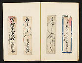 請求記号:チ6−4415−(1〜61) ; 東京の古書肆、文行堂横尾勇之助が戦前に収集した江戸時代・明治時代の文人・学者などの自筆一枚物資料の貼込帖61冊。一つ一つは短冊や署名、小書簡など短い資料であるが「捨て難い」ところから集められとっておかれた。戦争中は地中に埋め難をのがれたという逸話も伝わっている。収録されている著者の一部をあげると、国学者の山崎美成、屋代弘賢、前田夏蔭、狩谷■(木偏に夜)斎、書家の巻菱湖、俳人松木淡々、明治の人では幸田露伴、仮名垣魯文、乃木希典、中村正直、守田宝丹など多彩な1000人近い顔ぶれの自筆資料がみられ、いずれも未公開のものである。