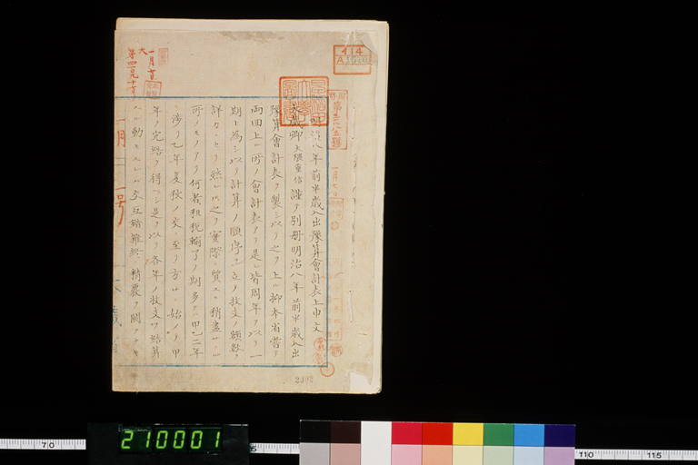 明治八年一至之月 歳入出予算会計表(三條太政大臣宛);イ14-A1510
